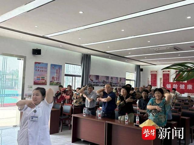 在悠扬舒缓的音乐中,老人们兴致勃勃地习练传统健身功法八段锦,于一招一式中舒展筋骨、调和呼吸。随后的中医穴位减压操教学更是点燃了现场热情。医务人员亲身示范,指导老人们通过拍打特定穴位,轻松缓解压力、改善睡眠、提神醒脑。简单易学的手法引得老人们纷纷动手尝试,现场互动踊跃,气氛热烈。