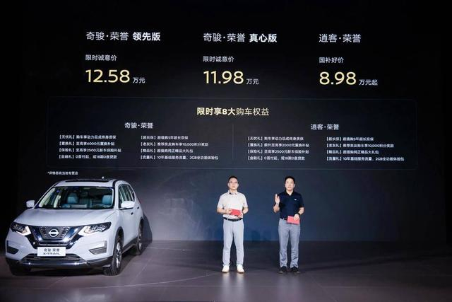 伴随奇骏·荣誉上市,逍客・荣誉也正式推出8.98万元起国补好价,并带来8大购车好礼,与奇骏·荣誉组成“荣誉CP”联袂出道,为不同需求的用户带来更加丰富的购车选择。