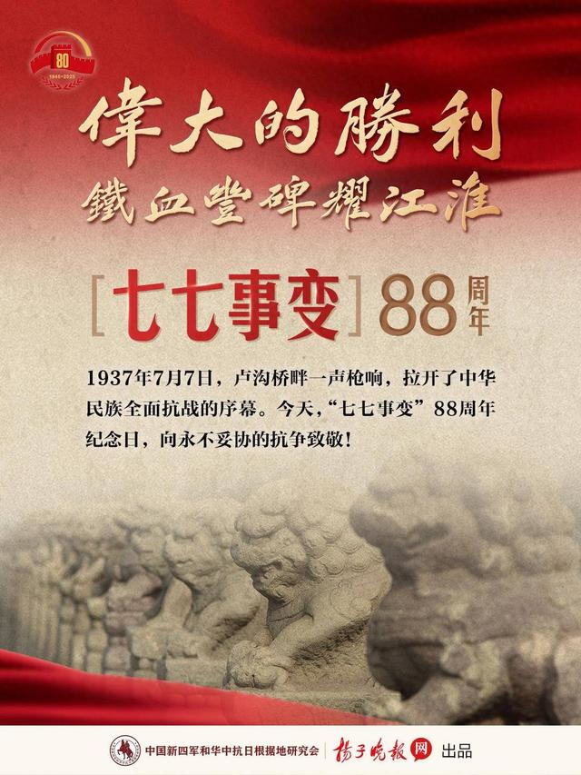 今天是“七七事变”爆发88周年纪念日。1937年7月7日,“七七事变”在北京西南宛平城外的卢沟桥爆发,拉开了中华民族全面抗战的序幕。