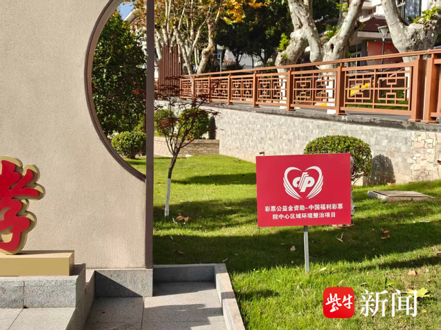记者走进福利院,首先被院区整洁优美的环境吸引。入口处的中心区域草木葱茏,景观小品与文化墙相映成趣。“2022 年我们用 60.43 万元福彩公益金做了环境整治,2000㎡的区域从杂乱场地变成了老人们的休闲乐园。” 院长汪富军介绍道。