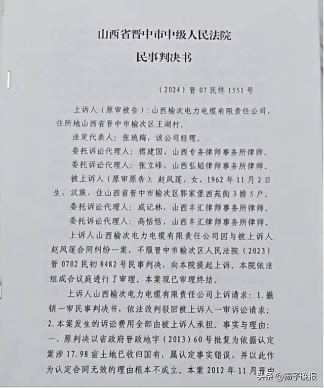 2024年5月15日,晋中市中级人民法院做出(2024)晋07民终1551号终审判决: