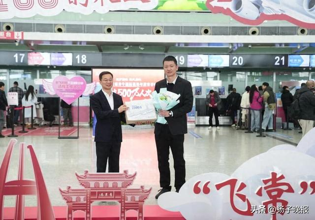 常州市市长周伟为第500万名幸运旅客送上纪念牌及荣誉证书。图源:常州奔牛国际机场据介绍,常州奔牛国际机场是常州市加快构建现代综合交通运输体系的重要载体,目前机场航站楼建筑面积3.8万平方米,跑道3400米,停机位20个,廊桥6个,通航航点达39个,消防救援和医疗救护等级为8级,飞行区等级为4E级,可起降绝大多数E类宽体飞机,具备一类口岸开放条件。