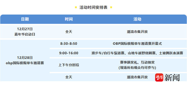 12月27日嘉年华抢先启动,潮流市集先逛为快;12月28日核心赛事2025 obp国际极限单车邀请赛热血开赛。活动以“专业竞技+全民狂欢”为核心,汇聚100余名国内外选手,超300组家庭已相约前往,这里不只是专业骑手的竞技场,更是全南通人休闲撒欢的欢乐天地,到场就能解锁满满快乐!
