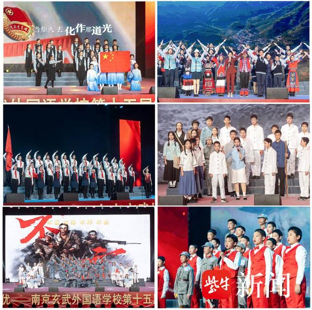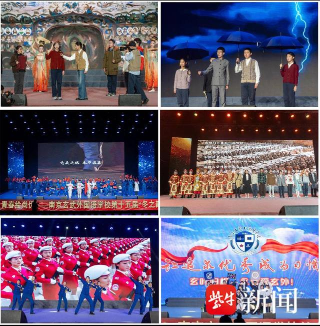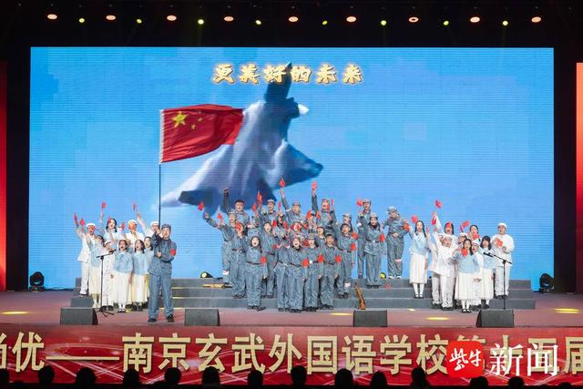 第二篇章“尚优·赞山河”中,初三学子以舞台剧为主要形式。节目《我心归处是敦煌》《邓稼先》《逐梦苍穹——航天梦》,生动演绎了樊锦诗、邓稼先、航天英雄等榜样的故事。《我心归处是敦煌》中特别设计了说俄罗斯语、意大利语的外国游客,参演学生表示,这是自己语言特长的特别展示。《时间的指纹》《集体的勋章》则从不同维度赞颂集体力量。舞台剧《玄叶归根》由初三10班班主任苏斌老师与学生、家长共同设计,三年来该班都以“爱校”为主题,通过不同的形式推出系列作品。节目融入真实的校园日常片段,一个个鲜活的瞬间让全场观众忍俊不禁。“明年2026年,这一届孩子即将毕业,因而我们特别设定了2036年他们学有所成返回母校的情节。剧中的角色并不都是了不起的大人物,但大家都实现了自己的梦想。我希望同学们能理解,坚守儿时梦想并付诸实践,也是一种幸福。”2026年玄武外校将迎来建校30周年,这一温暖节目也是向校友们发出的返校邀请。