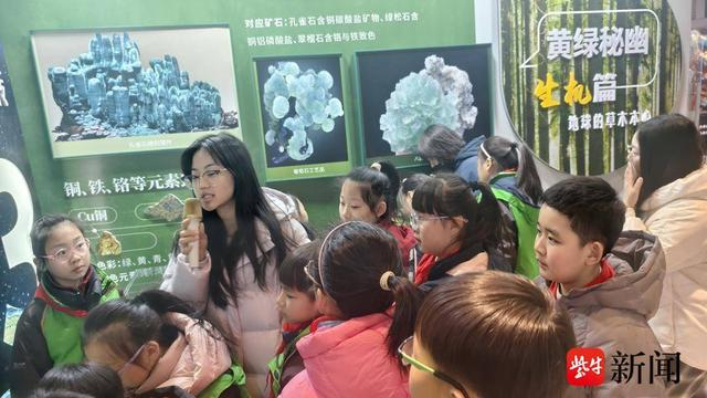 为进一步拓宽视野、积累实践经验,学校组织新团员们前往镇江市图书馆,参观《地球精华之美:矿物形色美学特展》。作为集体预约参观的团队,同学们在图书馆专属讲解员的带领下,沉浸式感受地球演化的神奇魅力。讲解员老师结合实物标本,生动讲解了矿物的形成原理、形色特征及科学价值,同学们认真聆听、积极提问,在互动交流中深化了对自然科学知识的认知。