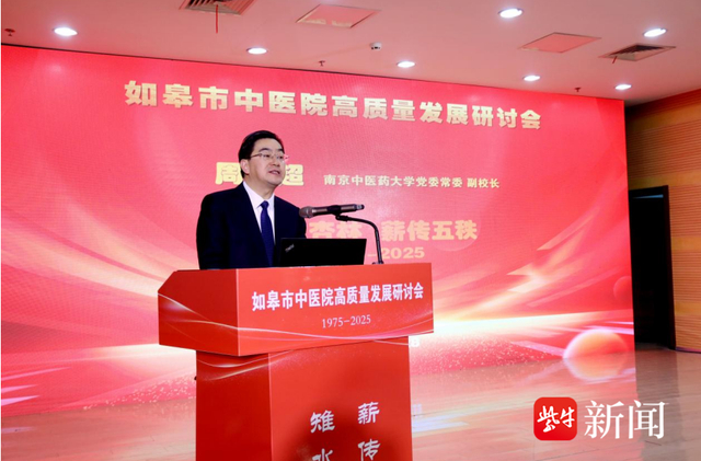 岁末迎新,硕果盈枝。12月28日,“雉水杏林 薪传五秩”如皋市中医院高质量发展研讨会在该院门诊5楼大会议室召开。来自南京中医药大学的专家学者、如皋市各级领导、南通地区各协作医院同仁、医共体成员单位代表及医院历任老领导、职工代表齐聚一堂,共叙杏林情谊,共商发展大计,为医院高质量发展注入新智慧、凝聚新合力。会议由如皋市中医院党委书记贾运主持。