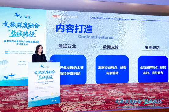 王丛在推介中介绍,《文旅深度融合“盐城路径”》是“中国文化和旅游皮书”地方实践篇的重要成果。作为中国旅游出版社策划出版的年度行业研究报告集群,“中国文化和旅游皮书”聚焦文化和旅游业发展状况、经济形势及热点问题,以专业视角、专家视野和实证研究方法,记录行业细分领域及区域发展现状、预测未来态势,为行业提供权威、客观、规范、系统且连续的决策参考与实践指引。