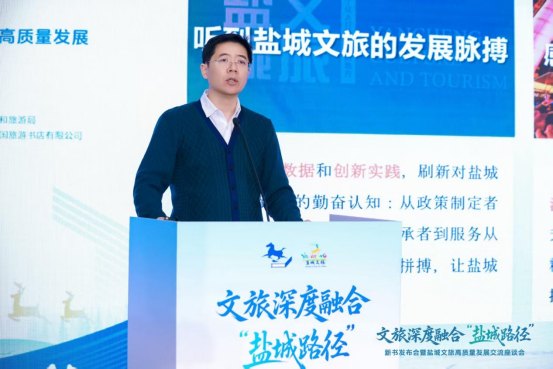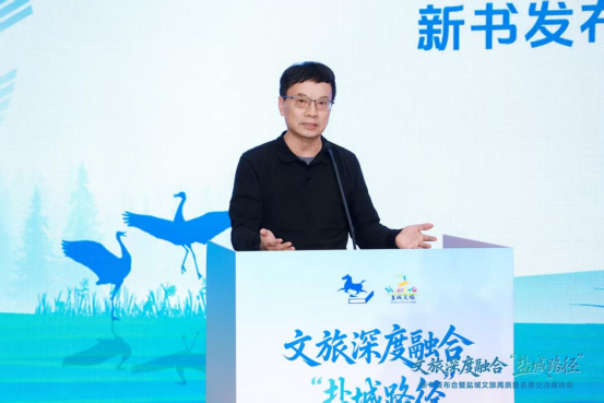 受盐城市人民政府副市长黄希别克·努尔旦委托,施赟之在致辞中介绍了盐城的红、白、绿、蓝“四色文化”,共同描绘出这座城市的深厚底蕴与高质量发展新画卷。近年来,盐城深入践行“绿水青山就是金山银山”的理念,推动把生态资源转化为旅游资源、转化成产业优势,通过生态禀赋、文化内核与创新引擎的协同驱动,促进文化旅游深度融合和文旅+百业跨界融合,构建了全域全季文旅新格局,品牌影响不断扩大,经济社会发展取得显著成效。《文旅深度融合“盐城路径”》一书,记录了盐城文旅的探索之路、融合之法、创新之举,既是对过去探索实践的系统总结,更是对未来发展方向的深入思考。期待“盐城路径”在实践中不断完善、在创新中持续升级。