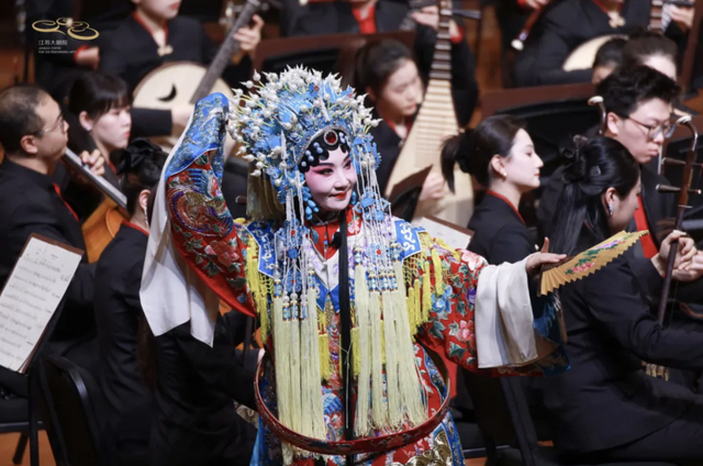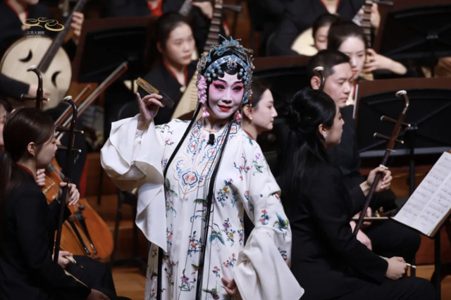 值得一提的是,京、扬、越、昆、锡五大戏曲联唱成为本场一大亮点。京剧的华彩、扬剧的淳厚、越剧的婉转、昆曲的雅致与锡剧的明快,在大型民族乐队的衬托下,展现出张力与和谐。有观众在演出后评论表示,“最喜欢乐团与戏曲结合的尝试,带来不一样的风格。这也许是戏曲传播的一种新途径。”