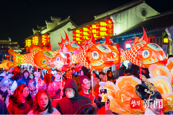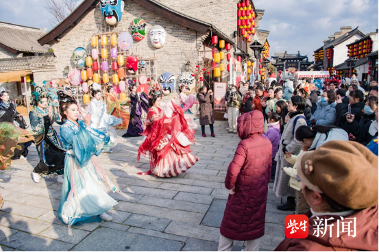 9点18分,在景区东晋水城城门楼广场,《新春新动线 “马”上新体验》鼓乐、舞蹈和开城门表演营造出热烈的氛围,大纵湖专属 IP 人偶首次亮相!以湖鲜鱼蟹、特色白壳螺蛳和灵动小鸊鷉为原型的萌趣形象,一出场便成为焦点。未来,它们将化身表情包、漫画主角、文创好物,陪伴每一位游客解锁趣味旅程,让大纵湖的故事,在行走间娓娓道来。中午前后,建安大街上,《仙侠奇缘》《玄箭仙族》《青瓷绽芳华》《坛韵》《半城风月》《歌曲驿站》《宋潮乐》《天骄无双》以及《遇见岳飞 —— 满江红》等精彩节目轮番上演,让游客目不暇接、沉醉其中。舞者们身着古韵华服,衣袂翩跹间,将仙侠的飘逸、青瓷的雅致、宋潮的风雅与岳飞的浩然正气演绎得淋漓尽致。快闪舞蹈的灵动节奏,搭配着或悠扬或激昂的旋律,引得游人纷纷驻足围观,掌声、喝彩声此起彼伏。夜幕降临,东晋水城的夜色被万千灯火点亮,红灯笼沿水而挂,与湖面的倒影交相辉映。在建安大街、宋街、水乡广场和大纵湖国家湿地公园,《花船巡游》《鱼灯夜游会》《九九艳阳天》水秀以及《放飞天灯·明灯许愿》《篝火晚会》等一系列特色节目与互动活动轮番登场,将跨年狂欢的氛围推向新高。最让人动容的莫过于《放飞天灯·明灯许愿》环节,夜幕下,游客写下祝福、点亮心愿,千灯齐飞,与漫天灯火、零星雪花相融,渐渐飘向远方。随后的《篝火晚会》更是点燃了所有人的热情,大家围着熊熊燃烧的篝火,手拉手跳起欢快的舞蹈,歌声、笑声、欢呼声交织,在水城上空久久回荡……