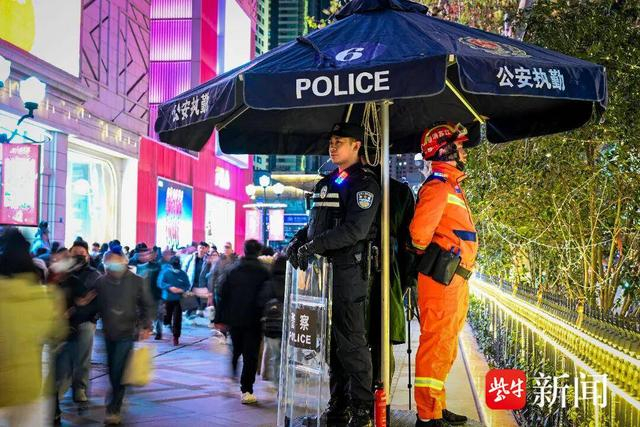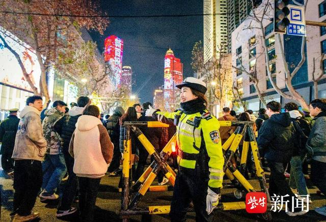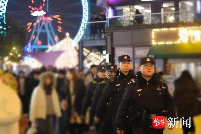 跨年夜,南京警方多项举措创新,累计投入2.2万余名安保警力,按照“一点、一策、一方案”要求,对20余个重点跨年活动点位逐一制定方案预案,加强警力投入,确保安全托底。