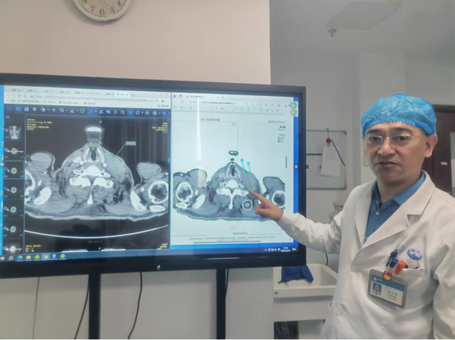复发/难治实体肿瘤是很棘手的临床难题,特别是头颈部肿瘤,童金龙主任会借助3D打印技术联合CT辅助引导进行粒子植入治疗,为了让患者和家属理解复杂的治疗方案,总会用通俗的语言打比方,“头颈部肿瘤血管神经多,穿刺难度大,我们用3D打印技术提前做好导航,规划好针道穿刺深度,误差能控制在1—2毫米范围内。”他曾成功为脑干旁的颅内肿瘤患者植入16颗粒子,还为上颌窦肿瘤患者实施精准粒子消融,“这些部位曾被认为是治疗禁区,但多模态精准引导技术让我们有了突破的底气。”