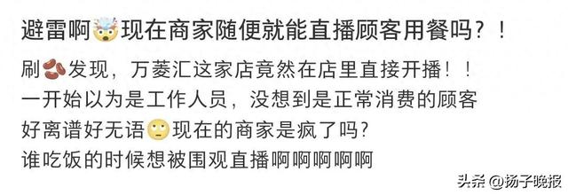 此事引发广泛关注,有网友表示自己曾去该饭店吃饭但并没有工作人员告知正在直播。也有网友调侃:为什么不直播后厨?