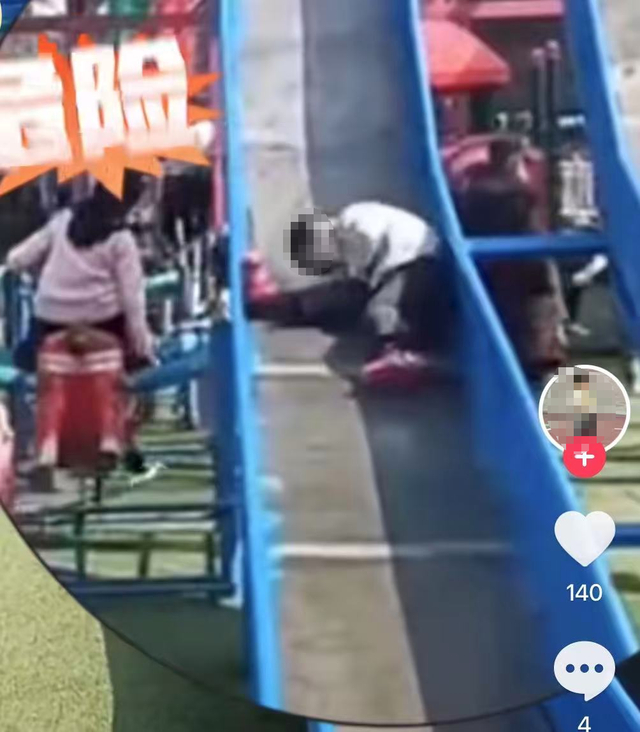 记者检索相关视频发现,这类滑道较宽的滑梯确实存在一定的安全隐患:儿童在滑梯上保持坐姿、双腿伸直下滑时,一旦身体发生转向,下半身很可能横向卡在滑道内;此时,若脚底与滑道两侧产生较大摩擦力,身体却仍在惯性作用下继续下滑,极易导致肢体受伤。