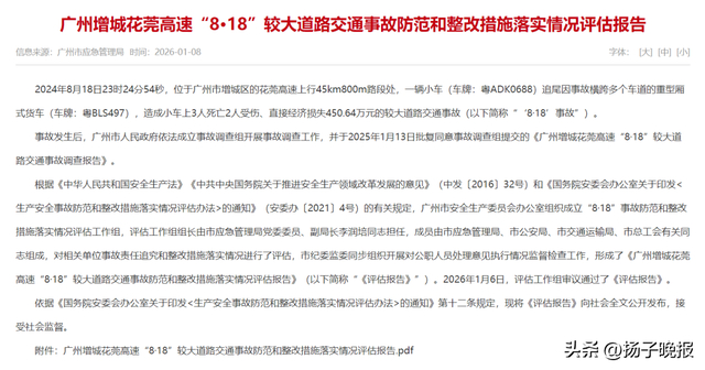 据澎湃新闻:成都哈拜网络科技有限公司平台注册的一辆顺风车此前在广州市增城区的花莞高速上追尾因事故横跨多个车道的重型厢式货车,造成小车上3人死亡2人受伤。广州市应急管理局2026年1月8日公布该事故的防范和整改措施落实情况评估报告。