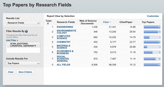 随着材料科学的入选,截至目前,西交利物浦大学已有工程学、环境与生态学、计算机科学、经济与商业、社会科学总论、化学、材料科学共计七个学科进入ESI全球前1%行列。其中,首次进入榜单的材料科学学科在十年间共发表论文430篇,总被引频次8979次。