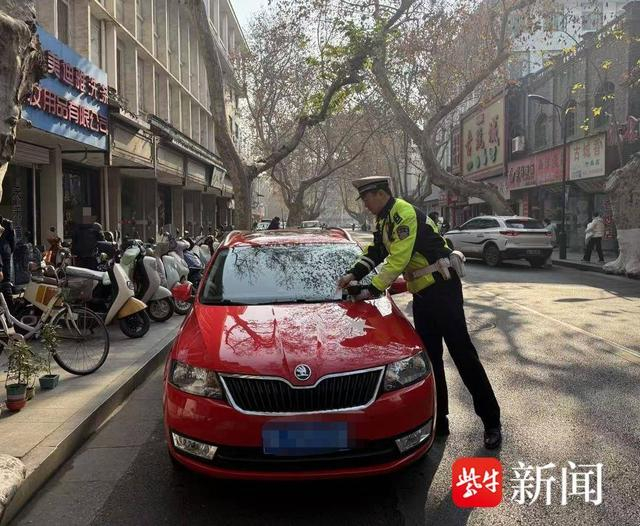 市公安局交管支队润州大队的执法人员采取“定点管控+流动巡查”方式,纠正机动车违停行为。在某红锅盖面店门前,执法人员要求违停的私家车驾驶员立即驶离,并指引其前往附近停车场停放;对车主不在现场或拒不整改的,依法张贴违停告知单。