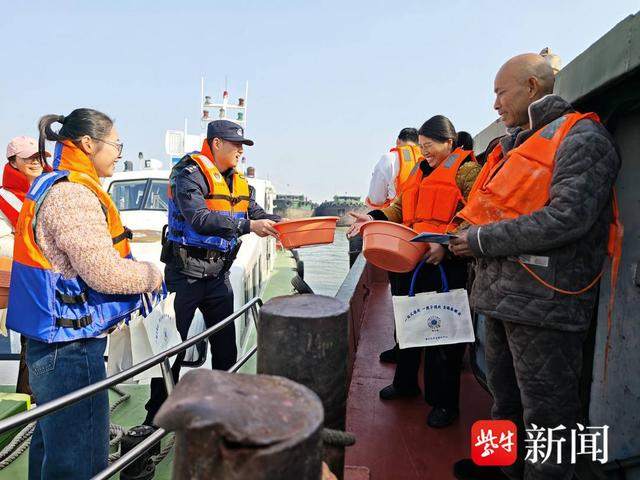 扬子晚报网1月16日讯(通讯员 王晓川 记者 姜天圣)“跑船这么多年,货运纠纷、法律疑问不用再跑断腿,反诈提醒还直接送到船头,这服务太好了!”船民老张捧着宣传手册激动地说到。2026年1月16日,长江航运公安局镇江分局镇江派出所携手镇江经开区政法委、社会治安综合治理中心,在镇江派出所和长江镇江段荷花池锚地同步启动“法治护航长江安澜暨综治中心宣传活动”,将法律保障、反诈提醒、纠纷化解等“一站式”服务送到船民身边。
