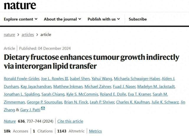 据悉,该文章研究团队经过对斑马鱼黑色素瘤模型及小鼠进行实验后发现,果糖通过肝脏代谢生成溶血磷脂酰胆碱(LPC)等营养物质,间接促进肿瘤生长,而非直接作为肿瘤细胞的能量来源。