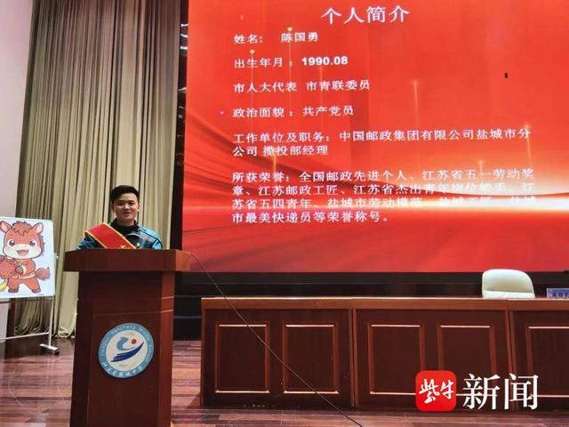 陈国勇,男,1990年8月出生,中共党员,现任中国邮政集团有限公司盐城市分公司揽投部经理,同时担任市人大代表、市青联委员。自参加工作以来,他扎根邮政基层一线,以党员的标准严格要求自己,带领团队深耕揽投服务,在提升投递效率、保障服务质量、助力地方民生与经济发展等方面取得了突出成绩。凭借扎实的业务能力与责任担当,他先后荣获全国邮政先进个人、江苏省五一劳动奖章、江苏邮政工匠、江苏省杰出青年岗位能手、江苏省五四青年、盐城市劳动模范、盐城工匠、盐城市最美快递员等多项荣誉称号,是邮政系统中基层青年骨干的优秀代表。