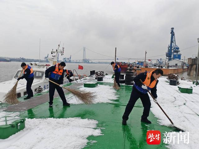 民警在扫雪。 黄绍琦 摄青年民警们以雪为令,闻令而动,顶着凛冽寒风与漫天飞雪,手持铁锹、扫帚,持续对辖区主干道路、码头通道、渡口台阶等关键区域开展清扫作业。他们登上停泊在锚地、码头的多艘船舶,协助船民清扫甲板、舷梯积雪,铺设防滑垫,并仔细检查船舶缆绳系固与防冻措施,同时开展安全宣传,叮嘱船民注意低温防护,确保人船平安。一句句问寒问暖,一次次细致帮扶,让船民们倍感温馨。