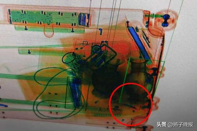 工作人员通过安检机检查发现旅客行李箱内有疑似子弹图像