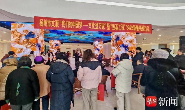 1月23日下午,扬州玉器博物馆书画名家集结,墨香四溢,一片喜庆氛围。扬州市文联“我们的中国梦——文化进万家”暨“强基工程”2026新春特别行动启动仪式,在这里举行。