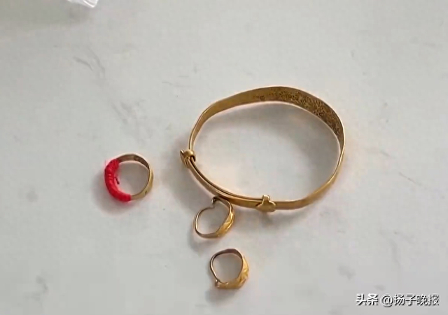 近日,在江苏扬州一社区医院,保洁员吴红英将一团卫生纸扫进簸箕时,发现不对劲。她打开纸团,里面包着一枚金戒指、一个金镯子和一对金耳环,她当即联系医院后勤主管。