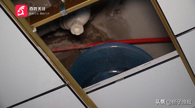 杨女士家住贵阳市花果园w区,只见她家里厨房的天花板已经开了一个口。因饱受漏水困扰,杨女士只能放一个盆在扣板上接水。