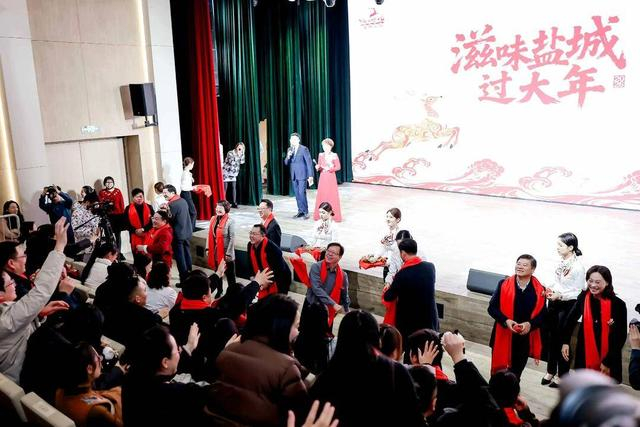 情景推介《滋味盐城过大年》则以沉浸式艺术手法,将观众带入一场跨越时空的旅程。从范仲淹督修堤堰的千年回响,到黄海湿地世界自然遗产的生态华章;从淮剧悠扬婉转的乡音韵致,到现代都市节奏下的潮流狂欢……一幕幕生动演绎,全方位展现了盐城深厚的历史积淀、独特的生态禀赋与充满活力的当代气象。