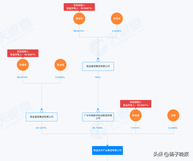 天眼查显示,东材科技、毅昌科技、高盟新材三家上市公司的第一大股东均为高金技术产业集团有限公司。实际控制人同为熊海涛。