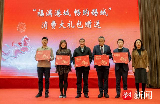 当天,无锡市商务局还为乘坐首班直达高铁来锡的香港各团体代表赠送了消费“大礼包”。(图片拍摄 宗晓东)