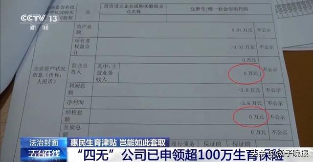 此外,根据调取的公司注册资料及2023、2024企业年度报告,调查组发现该公司资产总额为100元,营业收入、纳税总额为0元、利润总额为-3.6万元。然而就是这样一家无地址、无营收、无利润、无纳税的公司,已经给13位所谓“女职工”申领到了总计超过100万元的生育保险。