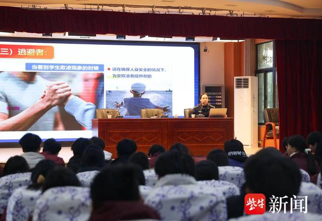 讲座中,民警根据学生的年龄特点及认知水平,结合《未成年人保护法》《预防未成年人犯罪法》等相关法律知识,采用“以案释法、以理明法”的方式,用通俗易懂的语言系统阐述了校园欺凌的定义、危害及如何防范等内容。