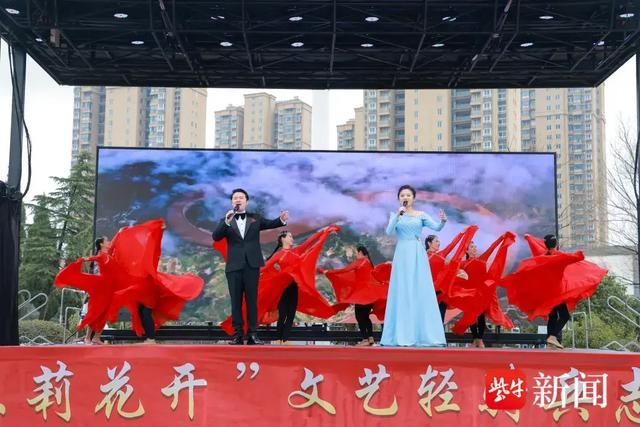 文艺演出环节精彩纷呈。扬州市曲艺研究所带来的扬州清曲《又见茉莉花》,以悠扬唱腔再现江苏文化符号,拉开了演出序幕。接下来的微型曲艺剧《“苏超”来了》,传统与现代结合,文艺与体育交织,碰撞出别样国风韵味。武术表演《武动童年》中,来自句容市天王中心小学的少儿武者以饱满的热情、标准的招式,展现少年意气风发,将现场气氛推向了高潮。由戏剧名家组成的文艺志愿者小队带来了戏曲联唱,越剧《梁祝·十八相送》、京剧《智取威虎山》选段、扬剧《新春观灯》等经典桥段轮番上演,让现场戏迷过足瘾,赢得阵阵掌声。演出在歌舞《春风十万里》中圆满落下帷幕。