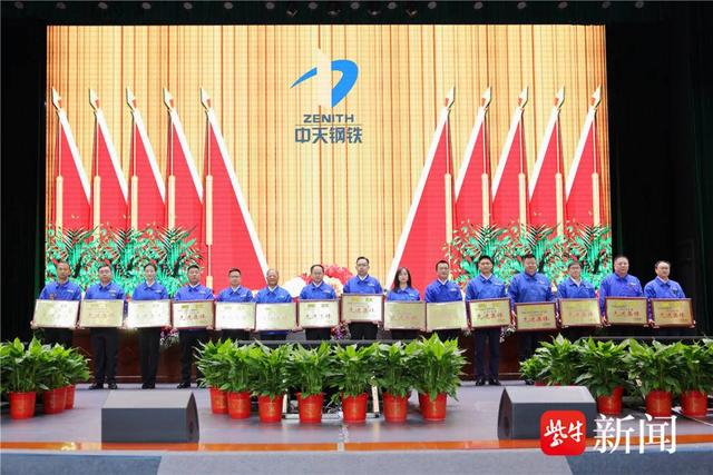 中天钢铁集团及公司领导、干部职工、先进代表等近千人参会,中天南通、淮安公司设分会场同步直播。会议由集团董事局副主席、副总裁、党委副书记高一平主持。