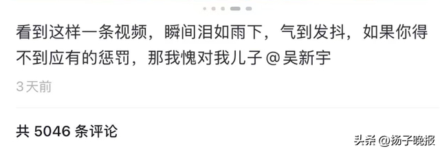 据媒体报道,面对网友和舆论的谴责,1月30日,“吴新宇”发布道歉视频称:“豪豪对不起,我只是想蹭热度做节目效果,并没有说你,而且不止我一个人说你,有很多人说你。我真的知道错了,我可以给你跪下道歉。”