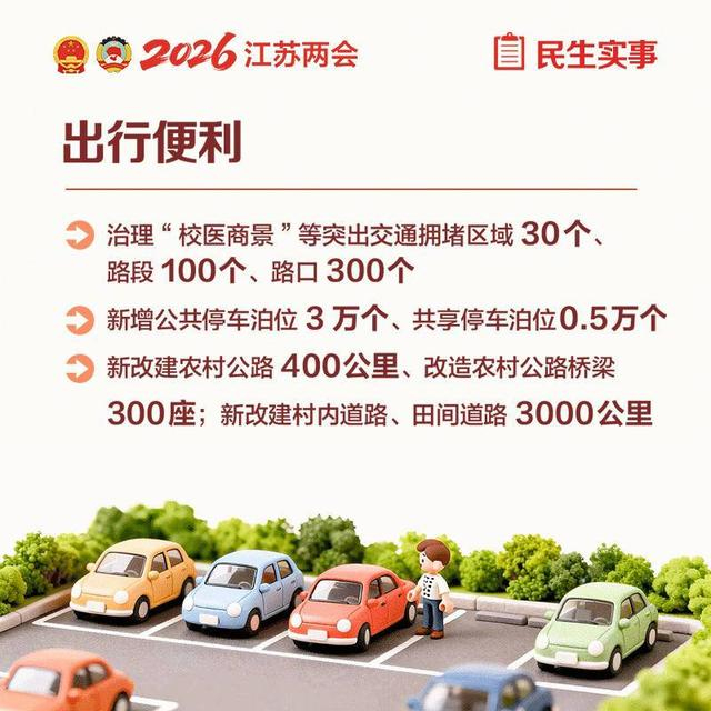 25.综合治理交通拥堵,深化城市道路交通精细化治理提升行动,治理“校医商景”等突出交通拥堵区域30个、路段100个、路口300个;优化公共交通线网,全省新辟优化就医线、校园线、通勤线等公交线路30条以上;新开工连接线、延长线、断头路等公共道路10条、100公里;建设过江通道分流线路,江阴-靖江长江隧道建成通车;加快智慧交通建设,完成 670公里繁忙路段智慧扩容和30对服务区停车智能引导系统建设。