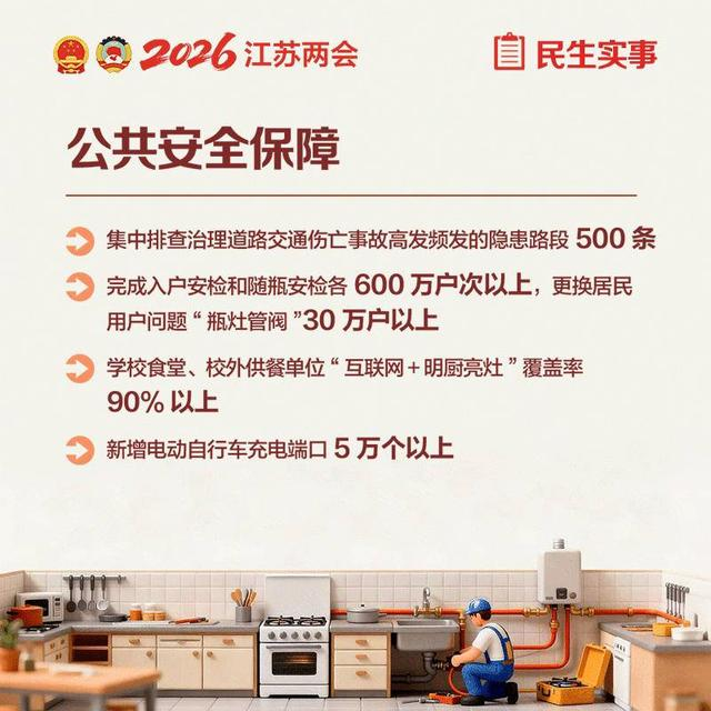 2月3日上午,江苏省十四届人大五次会议正式开幕。今年的《政府工作报告》继续突出“民生为大” ,《报告》提出,今年要扎实办好12类45件民生实事。