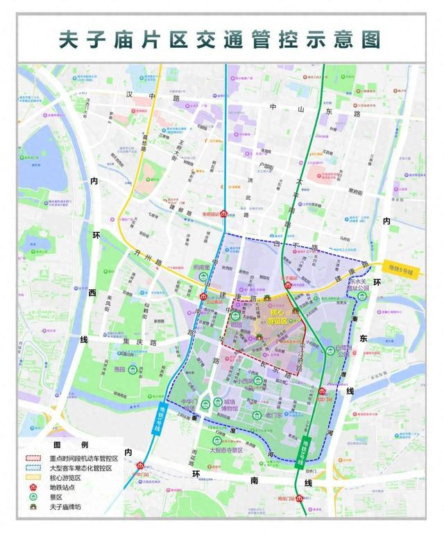 本次夫子庙片区交通优化提升措施重点在春节、元宵、清明、五一、国庆等法定节假日及暑期(7月20日至8月20日)实施管控,全年重点管控约58天,每天14时至22时实行8小时管控,其他时段基本保持正常通行。