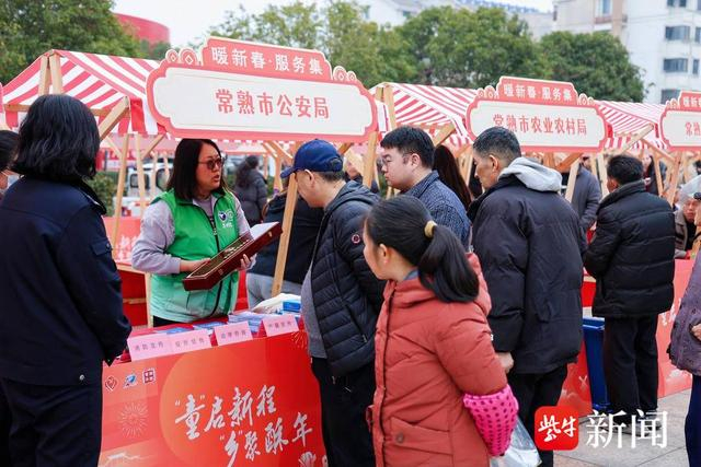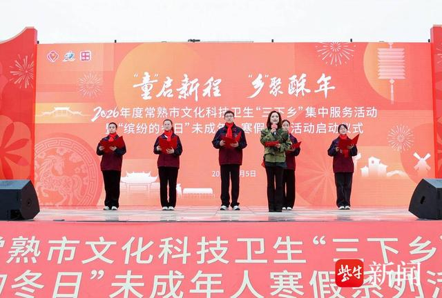 当天下午,“‘童’启新程 ‘乡’聚酥年”2026年度常熟市文化科技卫生“三下乡”集中服务活动暨“缤纷的冬日”未成年人寒假系列活动在董浜镇启动。服务市集、年货市集、美食市集、非遗市集等80余个摊位铺开,找工作、问政策、买年货、看演出在同一空间交织进行,不少群众一边逛市集,一边顺手咨询就业信息或排队体验志愿服务。
