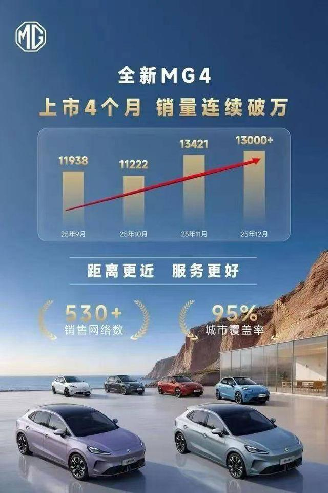 在国内市场,1–11月销量强势超越2024全年,全新MG4上市4个月,销量连续破万,11月、12月实车交付突破1.3万。MG品牌这一路高歌猛进,不仅依靠全国530家销售服务门店、95%城市覆盖率的强大渠道支撑,也源于一场由内而外的战略破局。这个果敢而自信的转身,既是MG对"中国力量"的深刻践行,也是其"技术平权"理念与全球化视野协同共振的必然成果。阴霾散去,属于MG的高光时刻正加速到来。