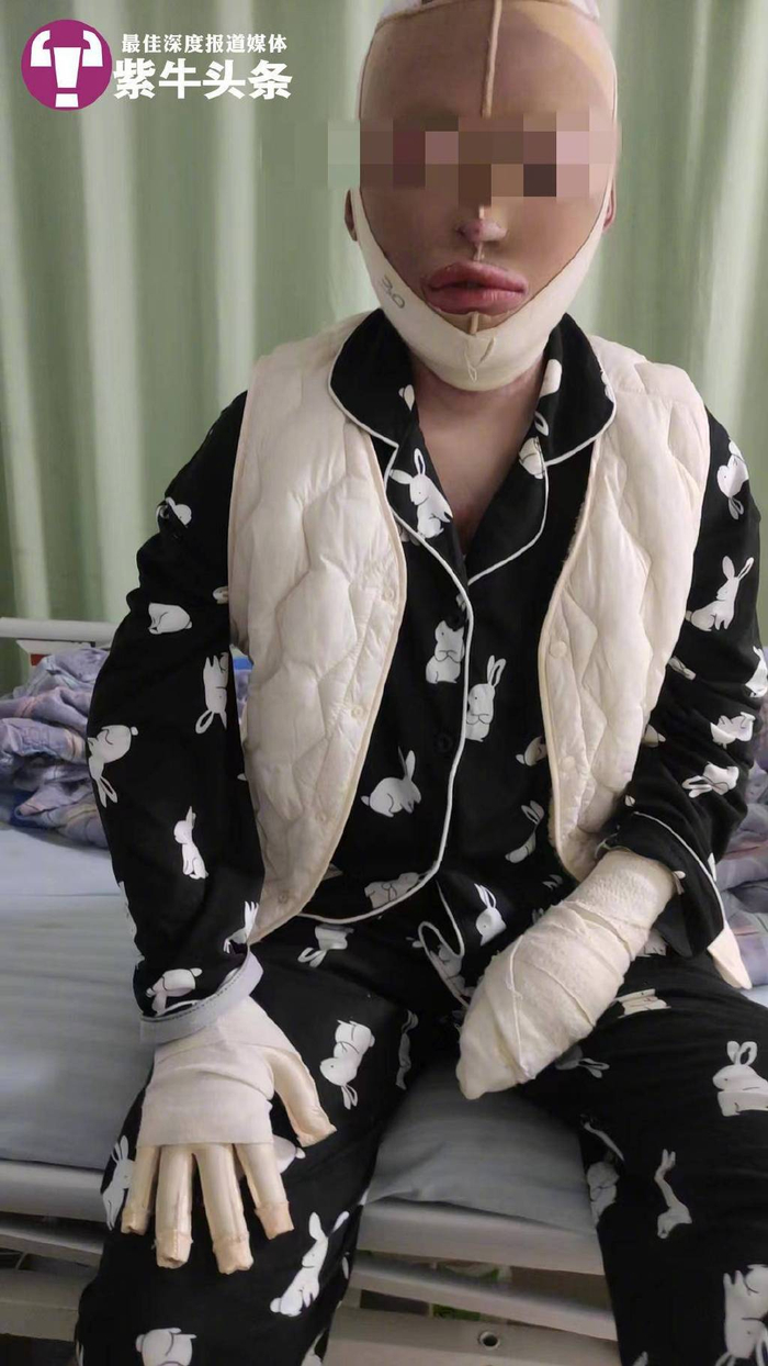 “我在医院昏迷了差不多1个月,后面有4个月躺在床上不能动弹。”小陈说,她入院当天就被下了病危通知书,全身烧伤面积达69%,侧身、四肢烧伤最为严重,左手手指被全部截肢。