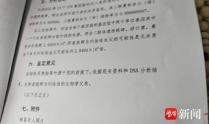 刘佳佳和父亲DNA比对成功
