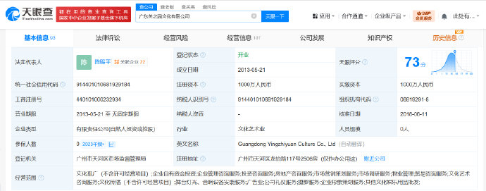 记者查询天眼查App显示,广东英之园文化有限公司成立于2013年5月,法定代表人为陈赐平,注册资本1000万人民币,经营范围含文化推广、企业自有资金投资、企业管理咨询服务、投资咨询服务、房地产咨询服务、市场营销策划服务等,由陈赐平、陈赐雄分别持股51%、49%,同时陈赐平、陈赐雄为该公司最终受益人。