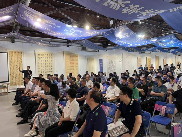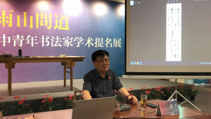 本次活动邀请到了国家一级美术师,江苏省文化艺术研究院研究员、江苏省文史研究馆馆员,著名书画家、鉴藏家萧平先生出席开幕仪式并作林散之书法赏析的学术报告。萧平先生认为,书法是中华传统文化中极具特殊性、创造性的艺术形式,而南京作为文化古都,在书法方面拥有优秀而悠久的历史传统,在二十世纪涌现出一大批以胡小石、林散之、高二适、萧娴为代表的杰出书法家。萧平先生从作品特点、艺术成就等角度分别对四位杰出书法家进行阐述。在讲座中,萧平先生用诙谐爽朗的口吻谈及林散之羊毫宿墨写字、萧娴三石一盘、高二适捍卫真理等奇闻轶事,将观众的思绪带回烟雨缥缈的旧时南京城,体现出南京书法家在当代书法史中的独创性地位,启示后来者继承、发扬“金陵四老”对于书法艺术的审美格调与不懈追求,勉励中青年书法家戒骄戒躁,从前辈的故事与作品中汲取力量,勤奋练习、不断突破,从江苏的悠远历史中寻找文化脉络,获得更高的艺术成就。