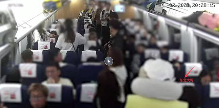 根据10日公布的相关视频显示,“东北大哥”座位和二人争执的座位,间隔前方4排座位的列车前进方向的左侧。两人争吵后,“东北大哥”站在座位处围观。直到杨女士击打王女士、王女士第一次击打杨女士的时候,“东北大哥”走到了跟前,说“这样你们就不对了啊”。