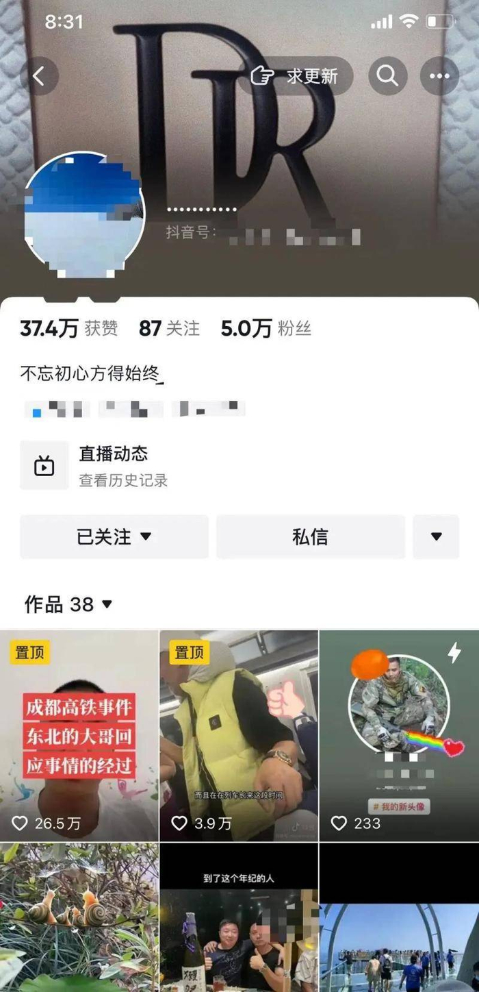 “东北大哥”发视频回应高铁“掌掴”事件经过截图“东北大哥”更改社交账号名称