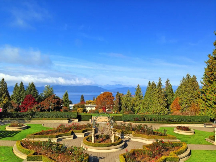 - ☕ 事实3: UBC校园内有一处玫瑰花园(Rose Garden)位于主旗杆旁边,这里不仅是校园美景,更是来温哥华旅游的人们必经之地,被誉为"北美最美校园"之一。