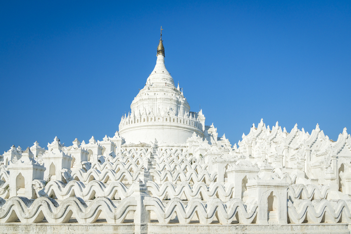与曼德勒城隔江相望的敏贡古城,也曾因辛比梅佛塔令游客趋之若鹜。因通体雪白的外观、层层相叠的装饰,辛比梅佛塔也被称作“奶油蛋糕宝塔”。